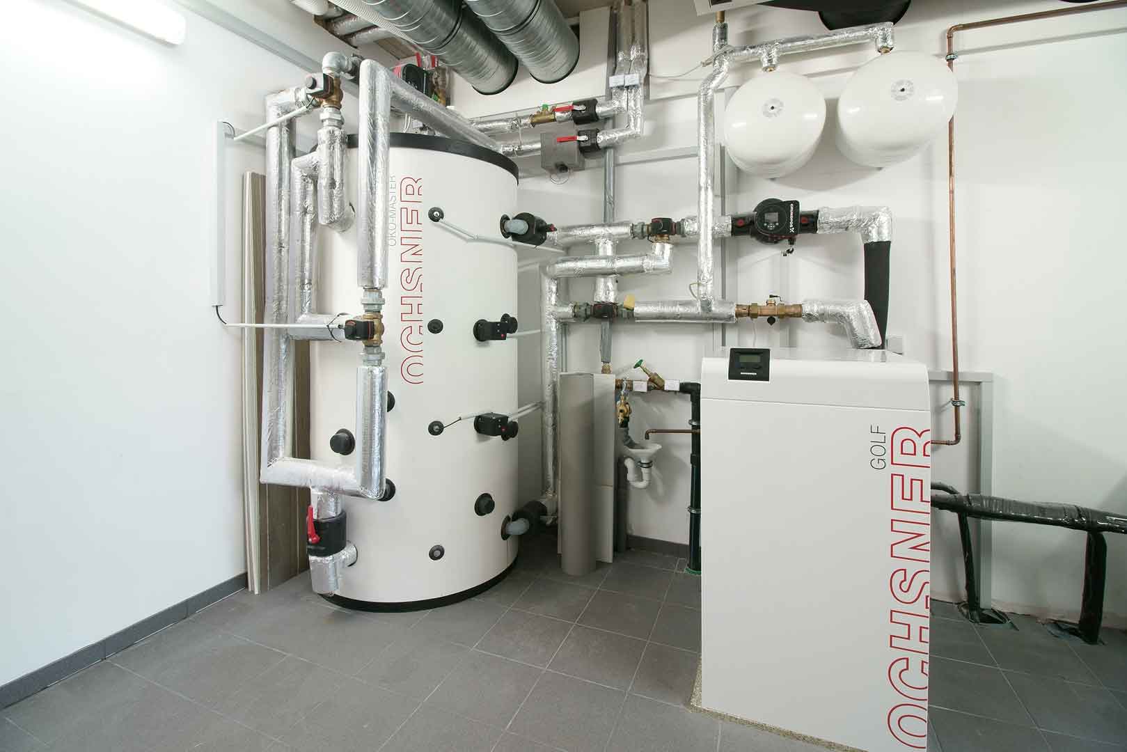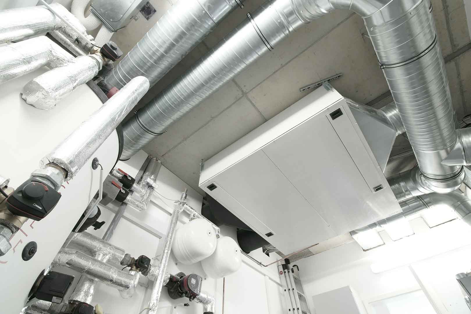 Installation und Inbetriebnahme einer Luft-Wasserwärmepumpe mit zusätzlicher Kühlfunktion. Überwiegend wurde hier von uns eine Heiz-Kühldecke verbaut, in kleineren Teilbereichen auch eine Fussbodenheizung. Ausserdem wurde das gesamte Gebäude mit einer zentralen Lüftungsanlage versehen.