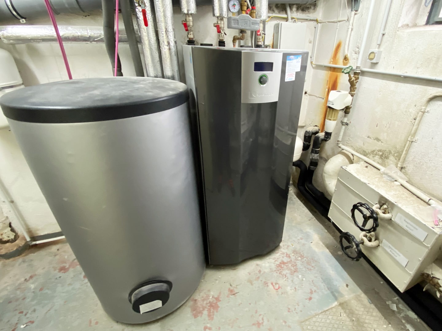 Jedenfalls stellte sich die 90 Meter tiefe Erdsonde bei Fabian Stuhrmann als unproblematisch heraus – es gab keinerlei Einwände vom Geologen oder der unteren Wasserbehörde, die solche Bohrungen genehmigen muss. An die Sonde angeschlossen ist eine Erdwärmepumpe vom Typ alpha innotec alterra SWC 82K3 mit 8 kW Leistung.